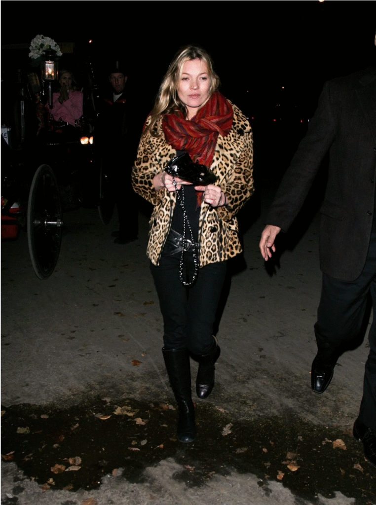 Kate Moss has been a fan of faux fur coats for over two decades. This black faux fur coat is not only her signature piece, but also adds a unique touch to her fall wardrobe. This coat effortlessly channels a cool urban vibe while also conveying elegance and style in social settings.